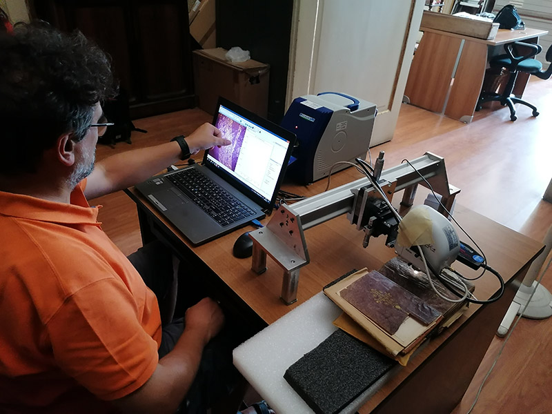 Portable Micro-Raman set up at Biblioteca Nazionale Vittorio Emanuele III of Naples. |